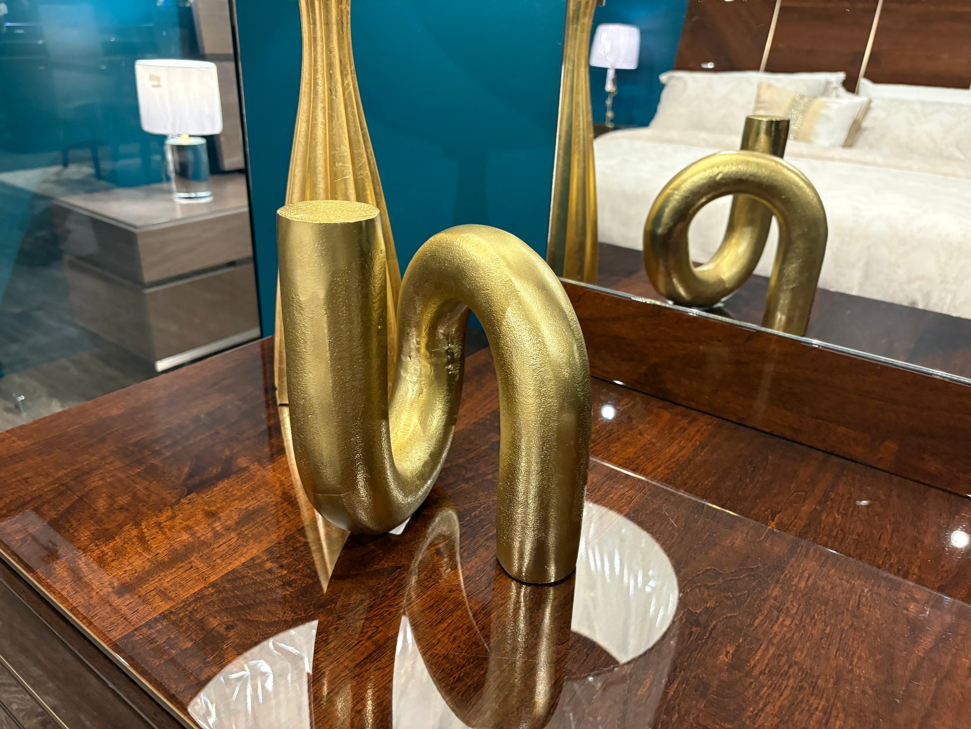 Elk Home designs this curvy contoured golden sculpture. The playful design of the decorative piece excels in elevating the space it is in.